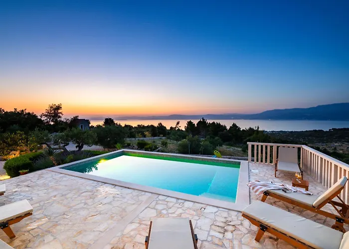 Die Villa Neda Supetar verfügt über eine Terrasse mit Blick aufs Meer und ist 34 Autominuten vom Flughafen Brac entfernt gelegen.